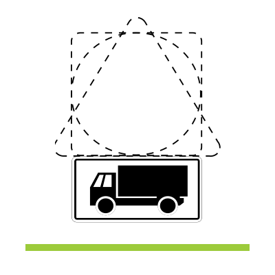 Dopolnilna tabla ne sme biti ožja od 2/3 dolžine tiste stranice znaka, ob kateri